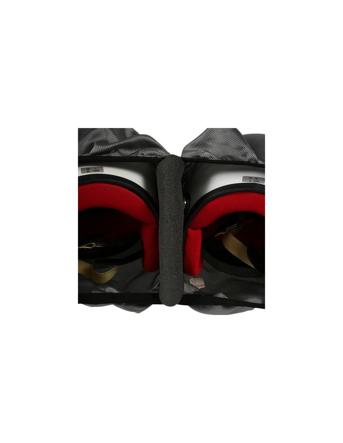 Conçu pour 2 casques, il dispose de mousses de séparation afin d'éviter tout choc entre les casques et de les protéger parfaitement.