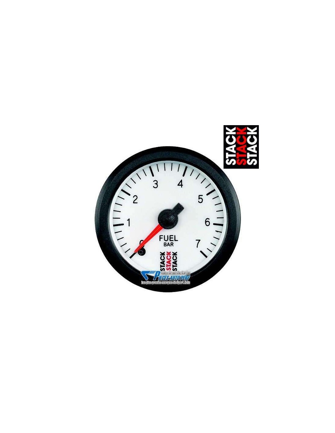 Manomètre de pression d'essence électrique STACK PRO Diamètre 52mm 0/7 Bars fond Blanc.