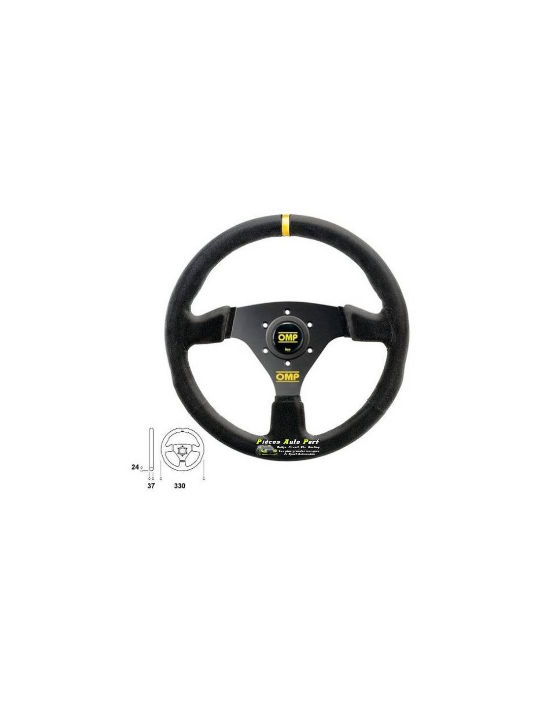 D'un diamètre de 330mm, ce volant à 3 branches aluminium anodisées noir est plat, et réalisé en peau retournée noir.